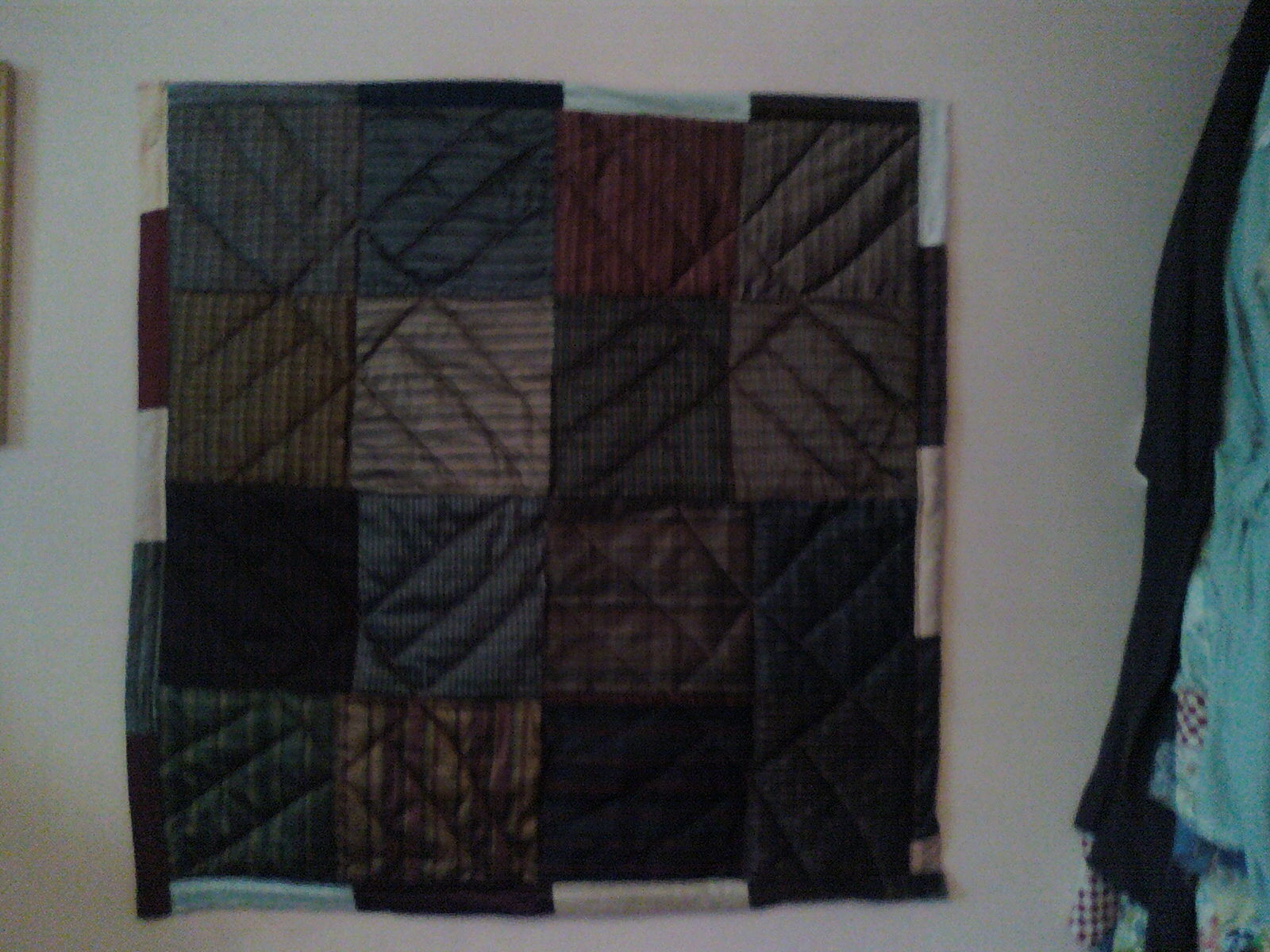 This lap quilt also made from a swatch-book and vintage Liberty’s fabric. is reverse patched so the seams are on the front, so the edges can be frayed. This was machine quilted.